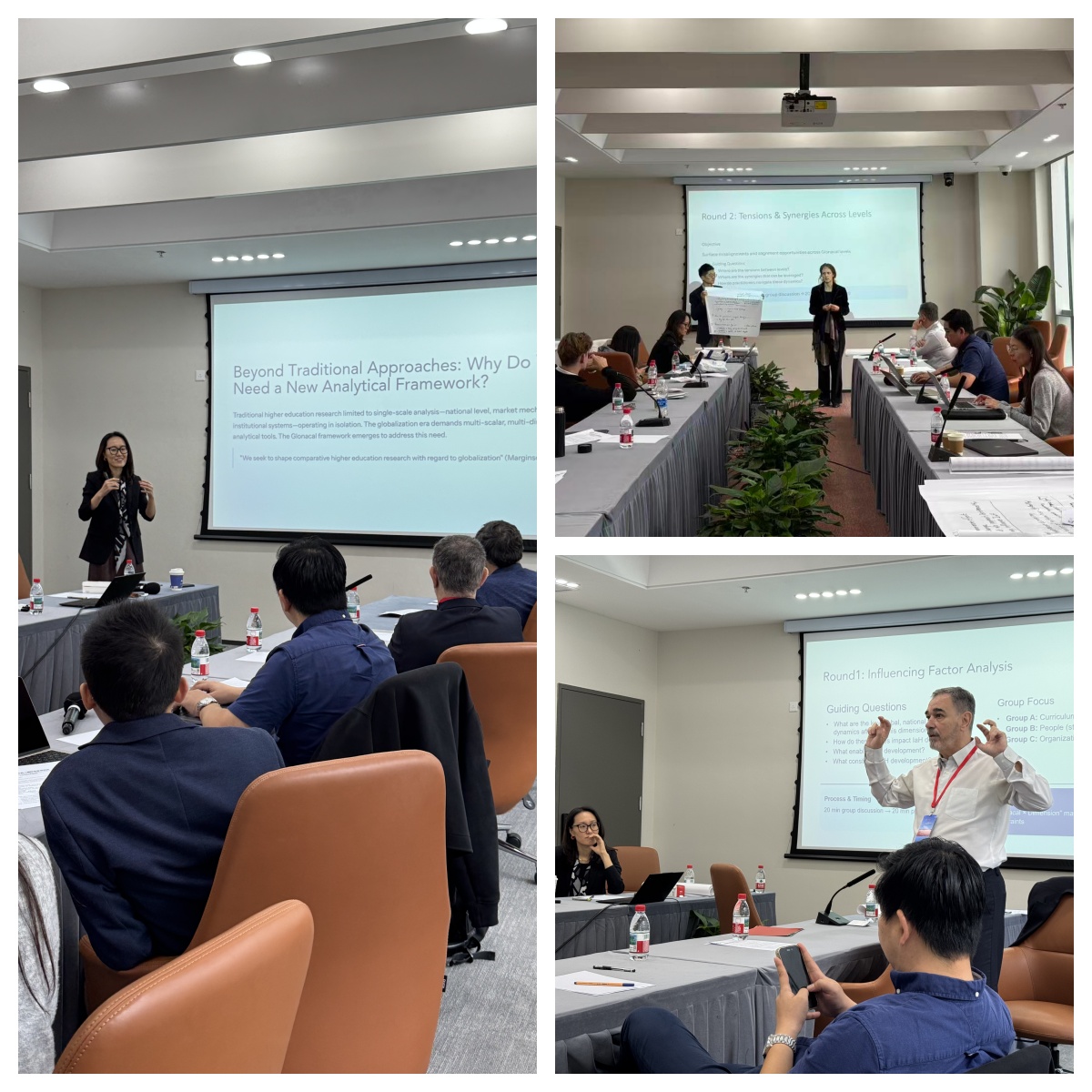 “在地国际化”(Internationalization at Home)是指高等教育机构在人才培养过程中,有目的地将国际和跨文化维度整合到面向国内学习环境中所有学生的正式和非正式课程中,为学生提供国际化学习体验,培养其全球胜任力。会议聚焦这一高等教育国际化重要议题,创新性地将Glonacal(全球-国家-地方)分析框架与“课程-人员-组织”三要素相结合,从理论与实践两个维度系统探讨了在地国际化的育人机制。会议采用专家咨询与圆桌对话相结合的形式,分三个阶段展开深入研讨,系统分析了影响在地国际化发展的关键因素,深入探讨了不同层面之间的张力与协同机遇,并针对中国高校实施在地国际化提出了具有可操作性的建议。与会专家指出,在全球化与地方化交织的背景下,需要突破传统单一尺度分析的局限,从全球、国家、地方三个层面审视高等教育国际化的多维动力机制。在地国际化不是跨境流动的“次优选择”,而是国际化的有机组成部分。