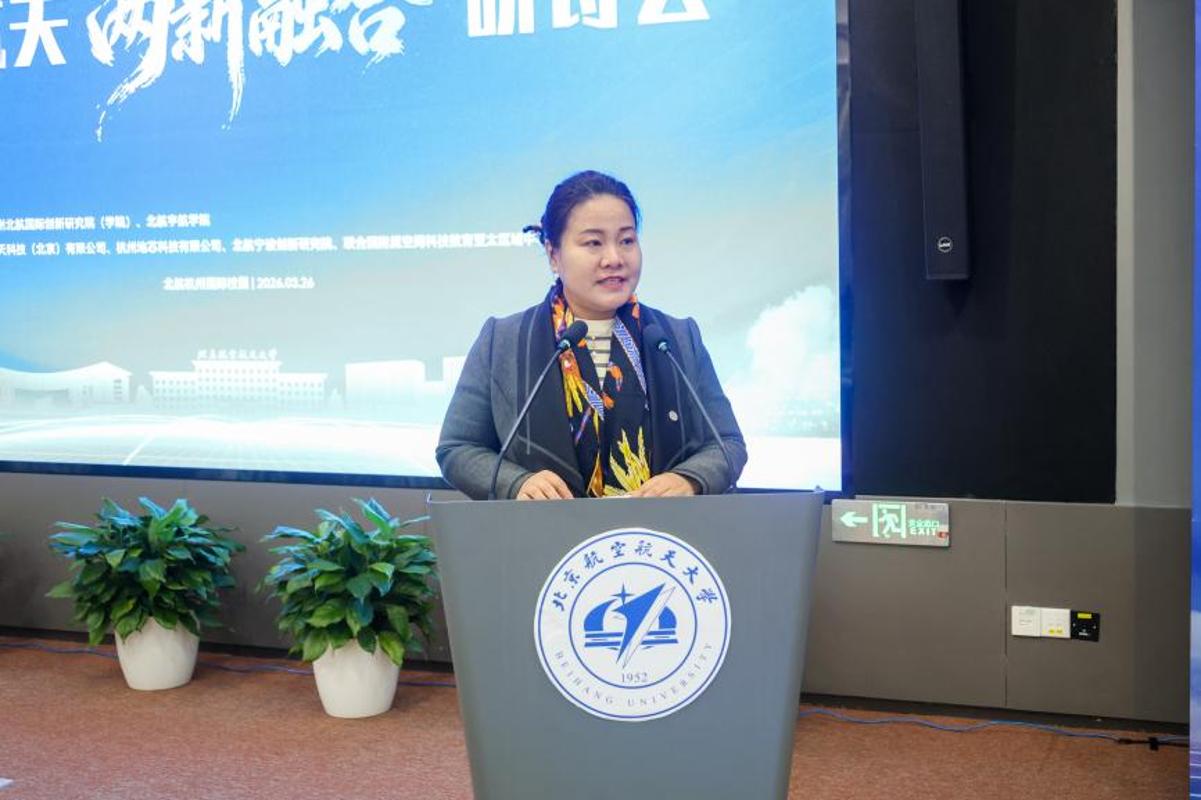 冯敏敏代表杭州未来科技城管委会致欢迎辞。她表示,杭州未来科技城在产业布局、人才引用等方面举措鲜明,未来愿与北航国新院一起,广聚天下英才,共筑创新高地。