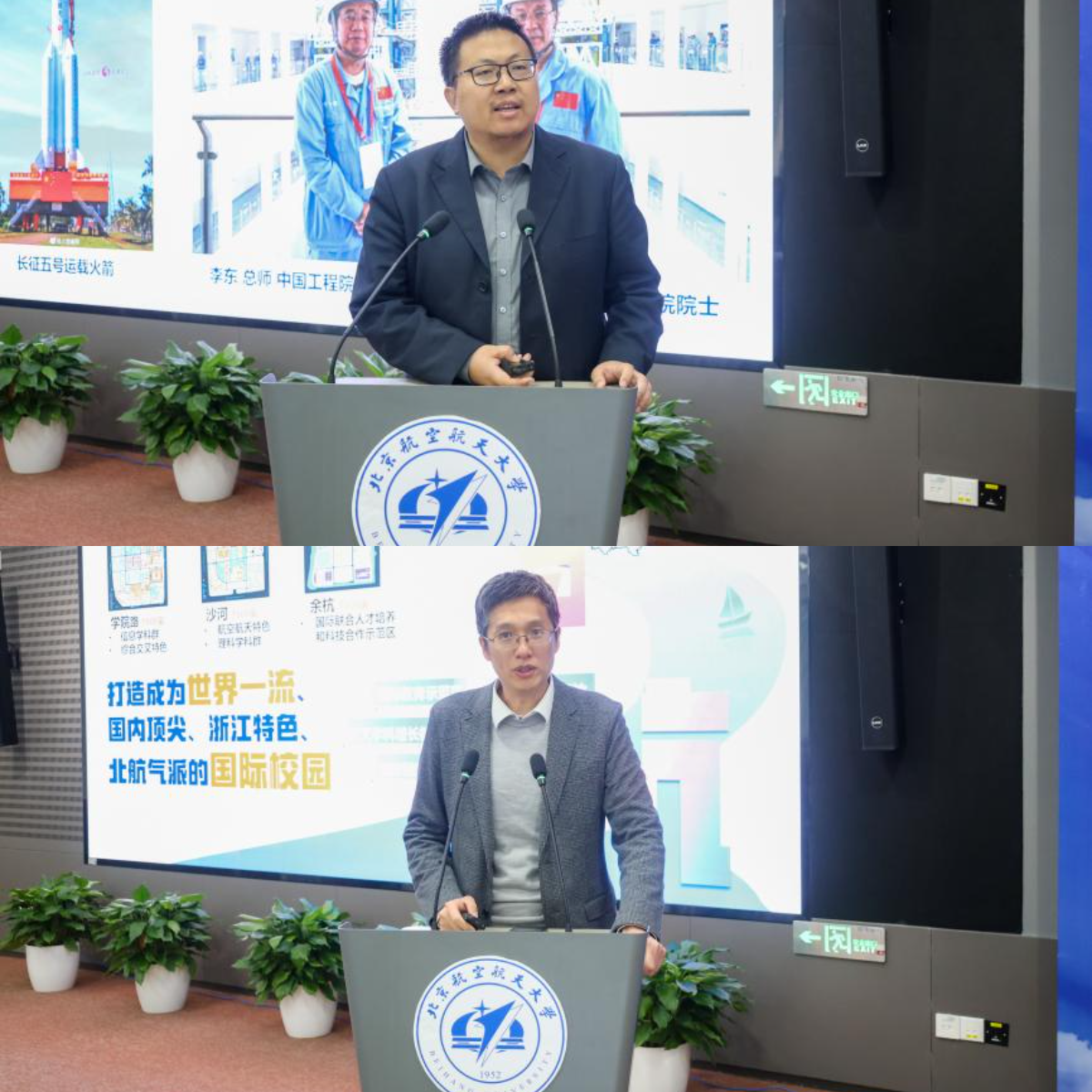 赵巍胜代表学校向各位领导和嘉宾长期以来对北航的关心和支持表示衷心感谢,并介绍了北航在浙江的战略布局。他表示,要充分发挥好北航国新院、宁波创新研究院、杭州创新研究院等单位战略作用,“杭甬双城一体”推进北航在浙商业航天布局。他强调,北航将利用好在浙办学条件,发挥好联合国附属空间科技教育亚太区域中心(中国)、亚洲仿真联盟等国际组织影响力,统筹好自旋芯片与技术全国重点实验室、智能系统与人形机器人国际研究中心等高能级科研平台,不断提升基础创新和原始创新能力,积极深化“两新融合”,拓展国际合作渠道,提升全球竞争力与影响力。