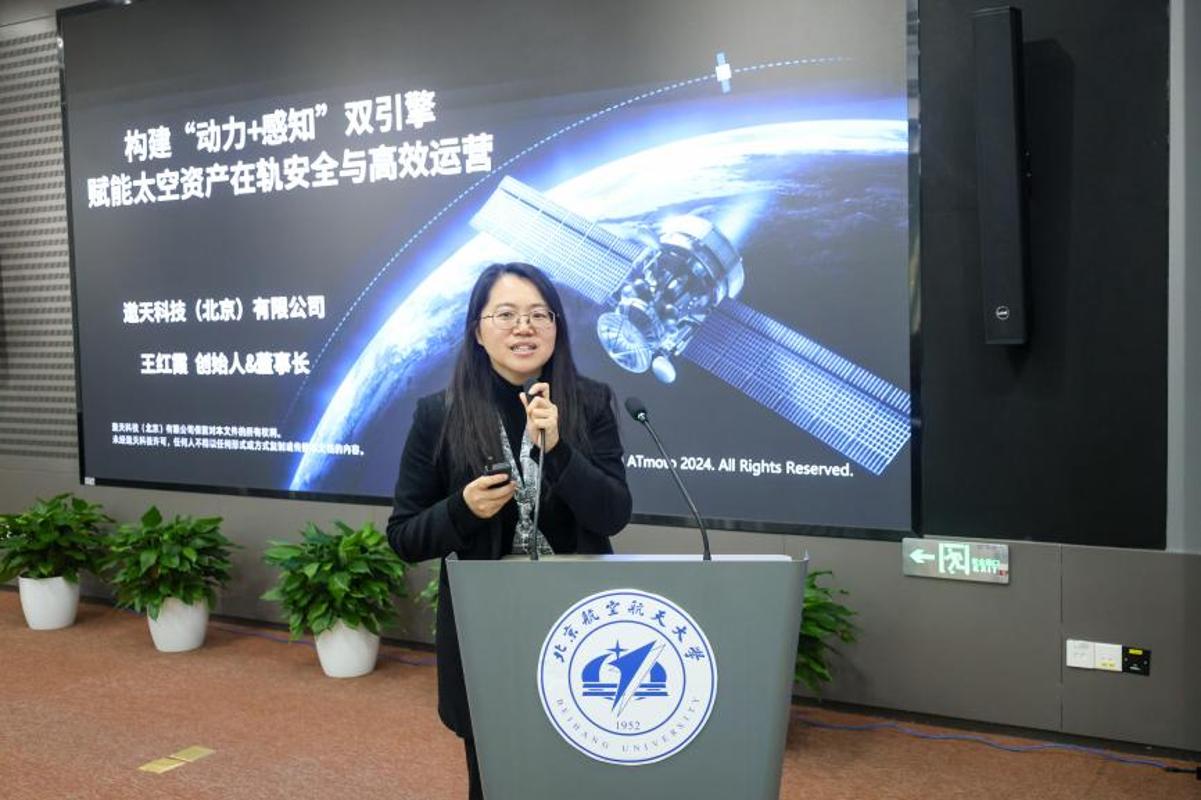 遨天科技创始人兼董事长王红霞(北航宇航学院2000级本科/2005级硕士校友)以《构建“动力+感知”双引擎 赋能太空资产在轨安全与高效运营》为题进行分享,表示将努力服务国家战略,发展太空经济,塑造太空文明,继续深化商业航天和高校科研技术双向互动,推动商业航天产业高质量发展。