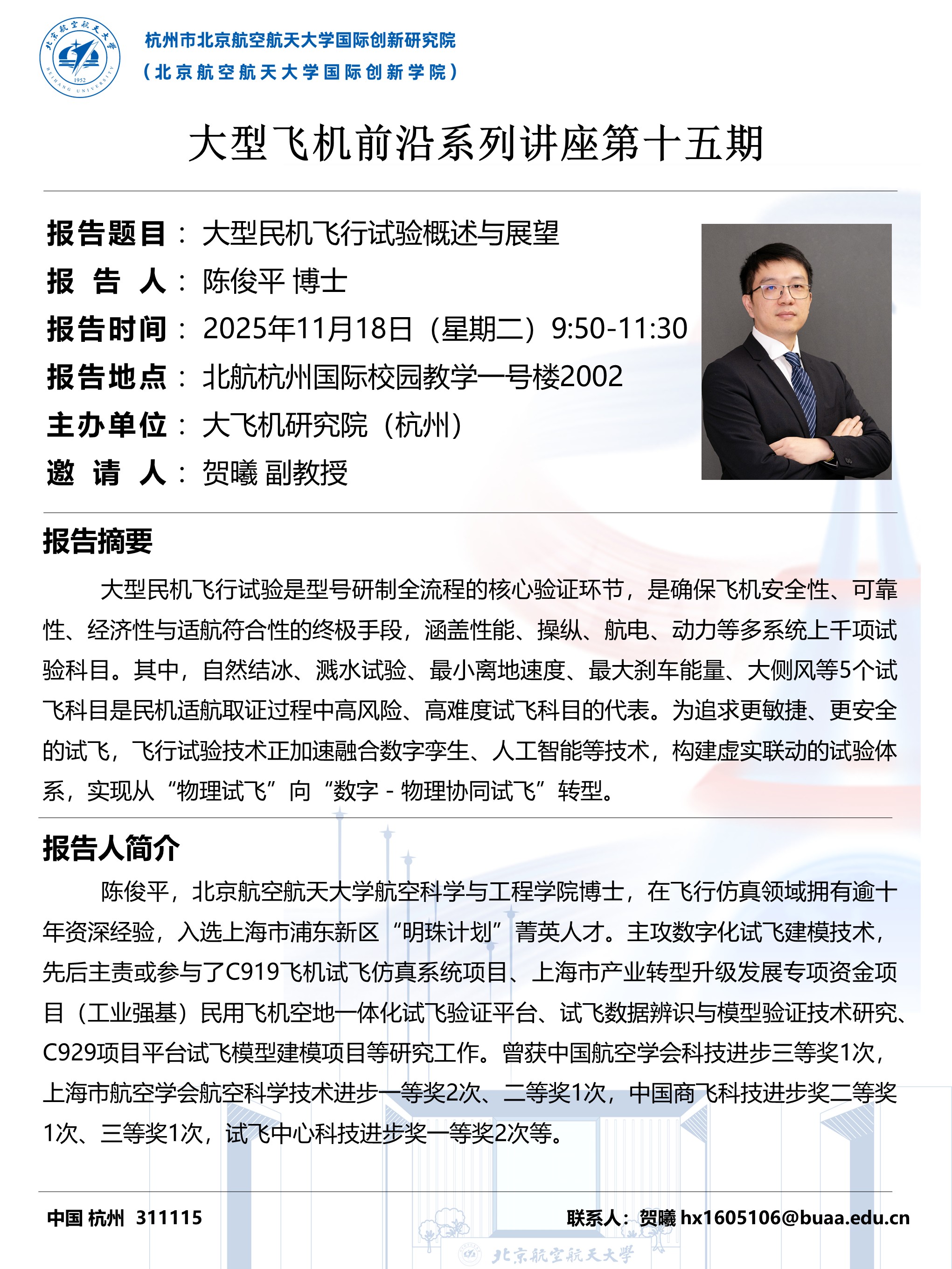 联系人:大飞机科创中心/大飞机研究院(杭州),贺曦