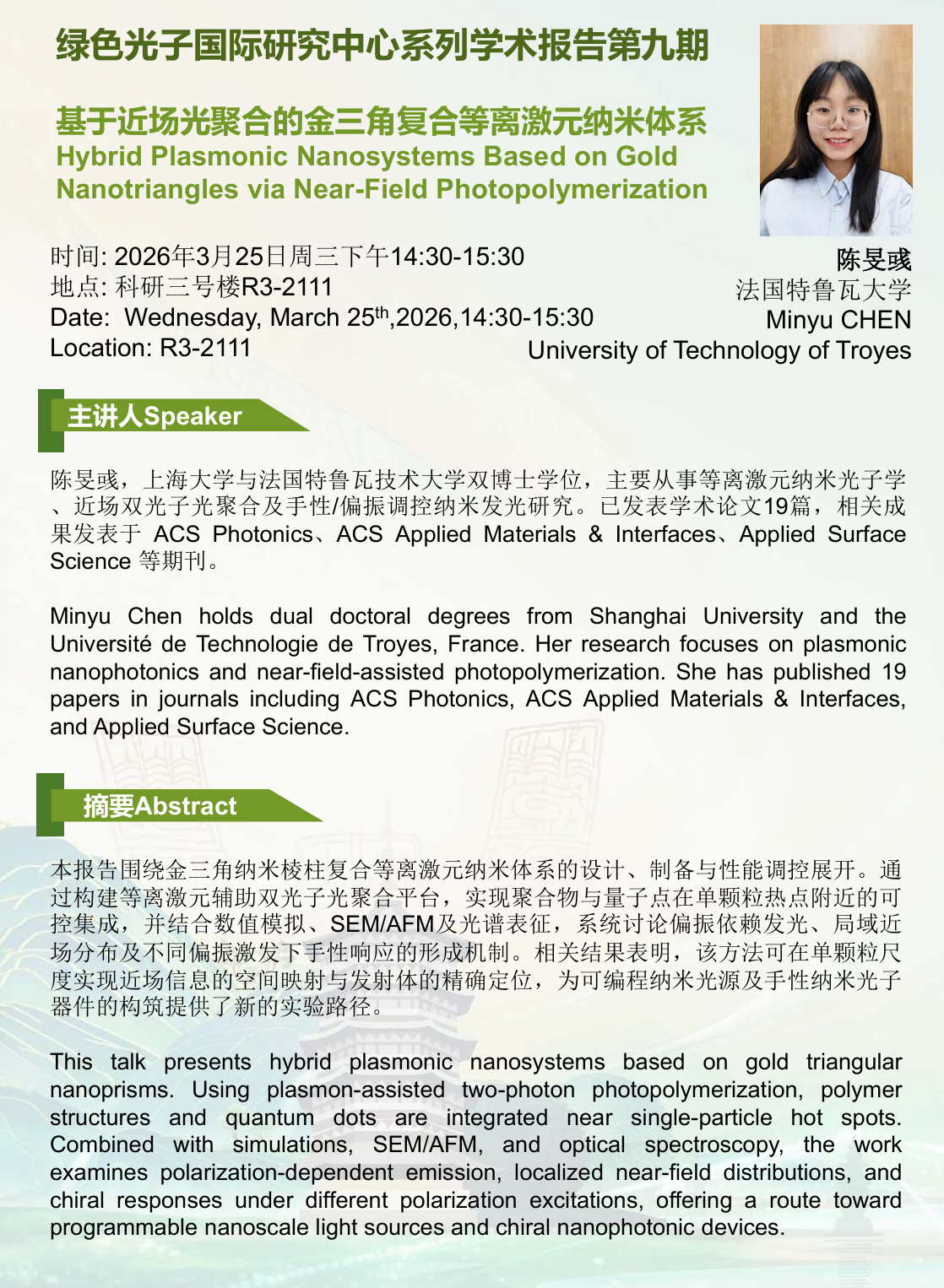 联系人:绿色光子国际研究中心,蔡雪宜
